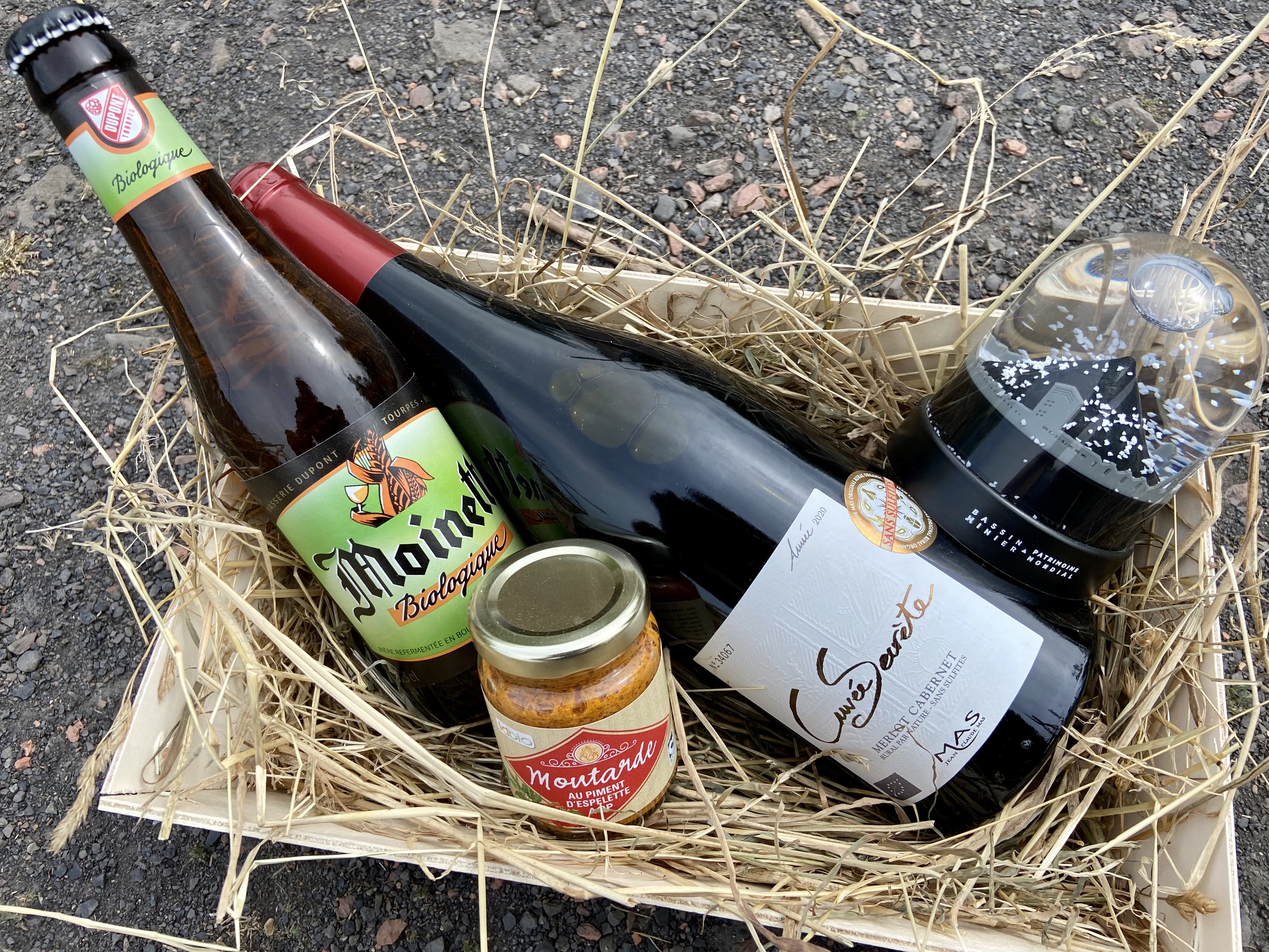 La chèvrerie vous propose ses paniers cadeaux sur lit de paille bio. Sans film plastique, c’est plus chic ! Bières*, vins* bio et sans sulfites, artisanat du bassin minier, fromages ou encore notre SAVON Bonne Mine au lait de chèvre et charbon ! Bêêêêêêêêêêh oui !